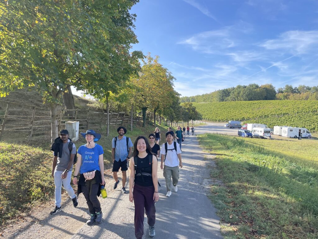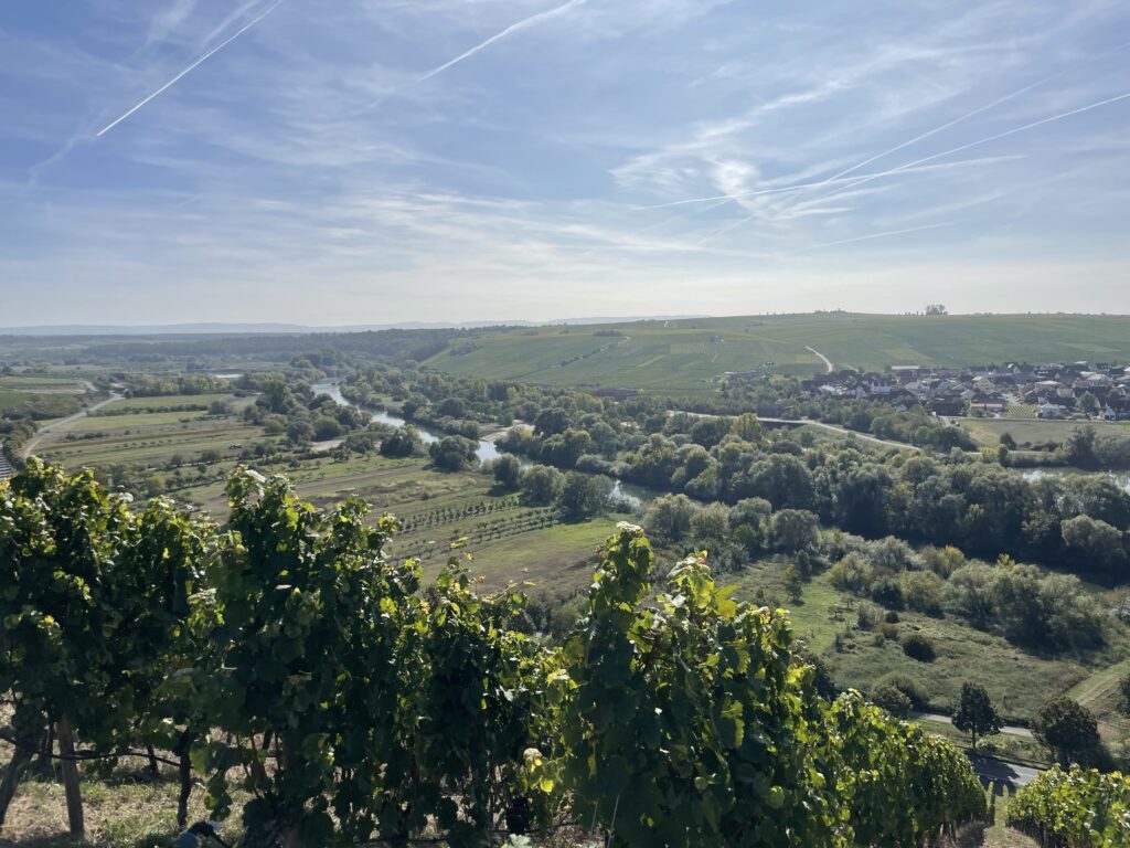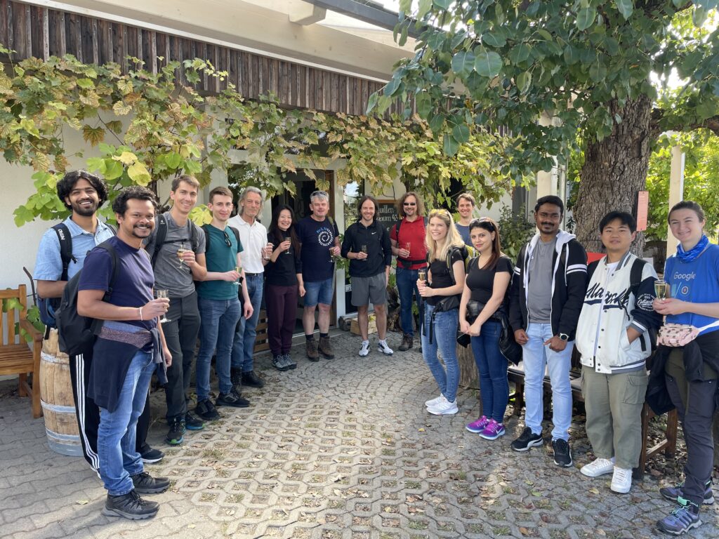 (October 12, 2023) With lovely sunny weather and corresponding mood, members of AOT-TP went for a hiking tour in the beautiful wineyards around Volkach on October 02, 2023. The tour included several stops at viewpoints, sights, for a wine tasting, a ferry ride over the Main river, and a lot of sun and fun.