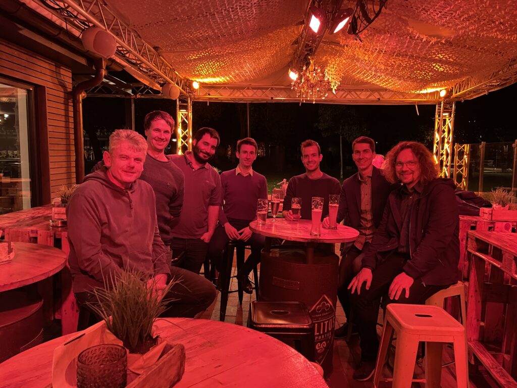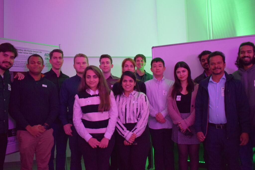 (March 20, 2019) The doctoral candidates of AOT-TP contributed with seven talks to the International Conference on Advanced Optical Technologies International Conference on Advanced Optical Technologies held in Erlangen from March 13 to 15, 2019. In addition, Thomas M. Koller and Cédric Giraudet chaired in total four sessions on Optical Metrology. As one of the social events within the conference, a dinner took place where also the contributing members of AOT-TP enjoyed the evening.