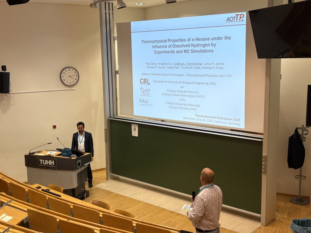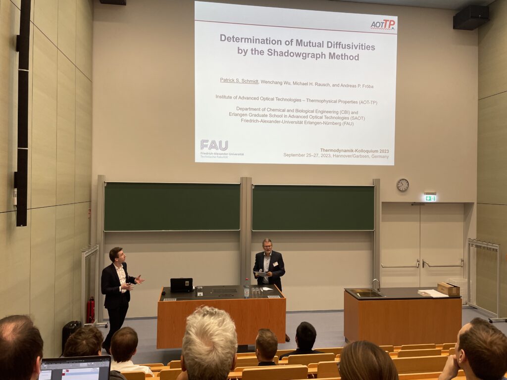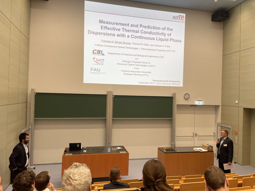 (October 12, 2023) The AOT-TP team contributed with several talks and posters to the Thermodynamik-Kolloquium held in September 2023 in Hannover. The presenters and titles of these contributions are given in the following: