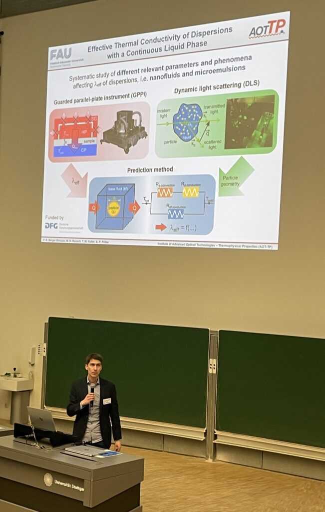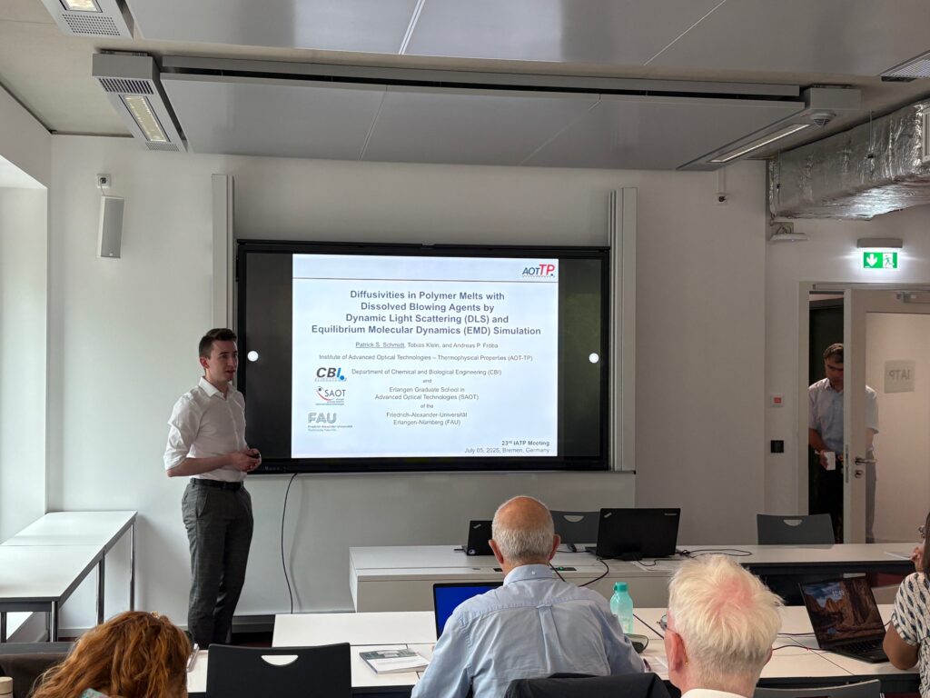 - The Doctoral Prize of the Faculty of Engineering of FAU 2025 was awarded to Maximilian Piszko for his thesis entitled „Dynamic Light Scattering for Simultaneous Determination of Thermal and Mutual Diffusivities of Fluid Mixtures“.