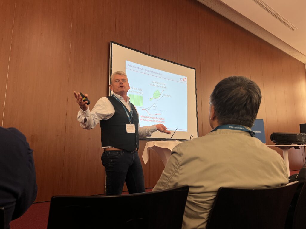 (October 07, 2022) Congratulations to Matthias S. G. Knoll for his successfully defended doctoral thesis entitled “Characterization of Heterogeneous Systems via the Determination of the Translational Diffusion Coefficient by Dynamic Light Scattering” today! We thank him for all his contributions to the AOT-TP team and wish him all the best for his future!