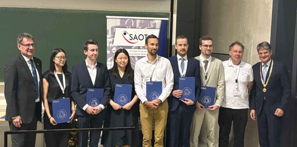 (July 04, 2018) Maximilian Piszko received the 2018 SPIE-FAU Best Thesis Award from the SPIE Student Chapter at FAU for his Master thesis entitled “Mass Diffusion Coefficients of Mixtures Related to Fuels with Biogenic Components by Dynamic Light Scattering” performed at AOT-TP. We are happy that Max continues his successful work as a doctoral candidate at AOT-TP.