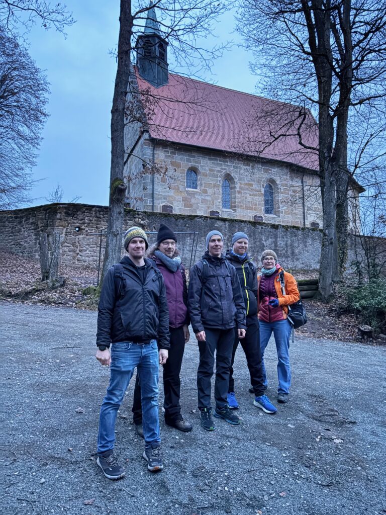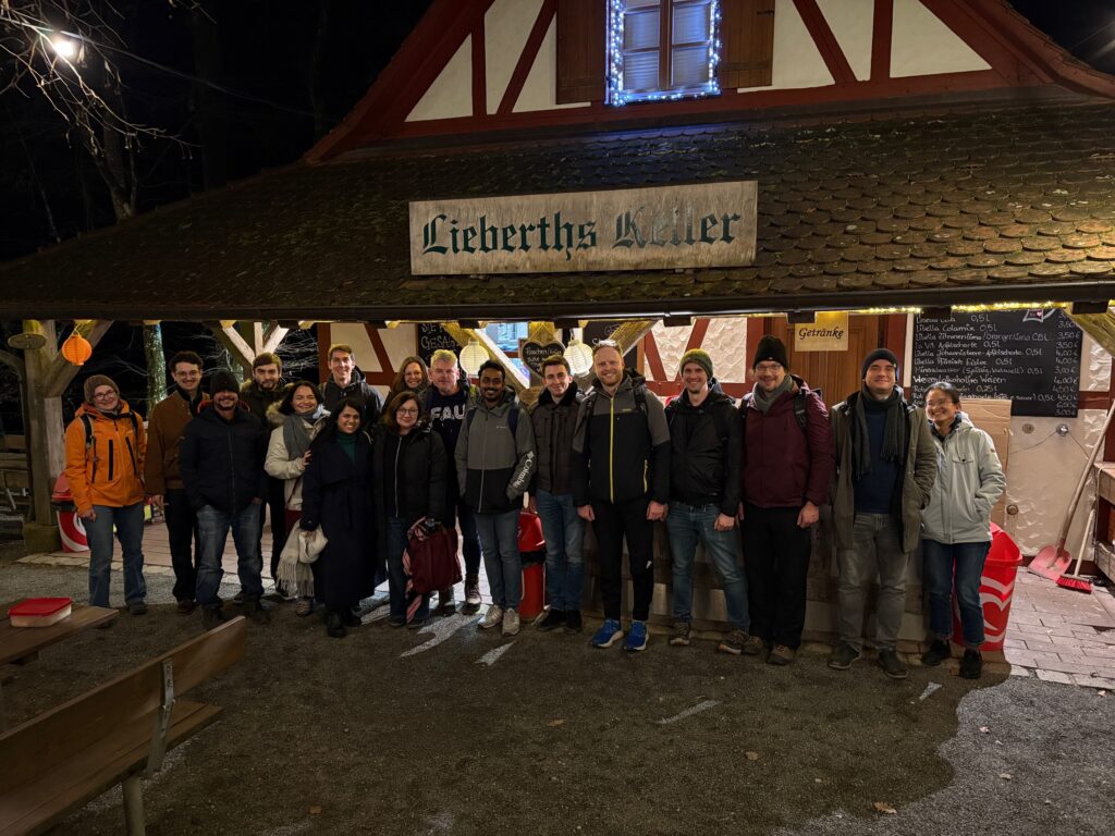 (December 22, 2025) To close the year 2025, some members of AOT-TP went for a hiking tour from Erlangen to the Kreuzberg close to Hallerndorf. After an “internal and external warm-up” at the starting point, beautiful winter weather (yet without snow) made the tour very enjoyable. And so did the final dinner at Lieberth’s Keller, where further institute members joined the group. Impressions can be found in the gallery below.